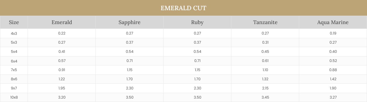Pre calculated, Emerald Cut Diamond Converion Charts from CT to MM, with reliability and high accuracy,